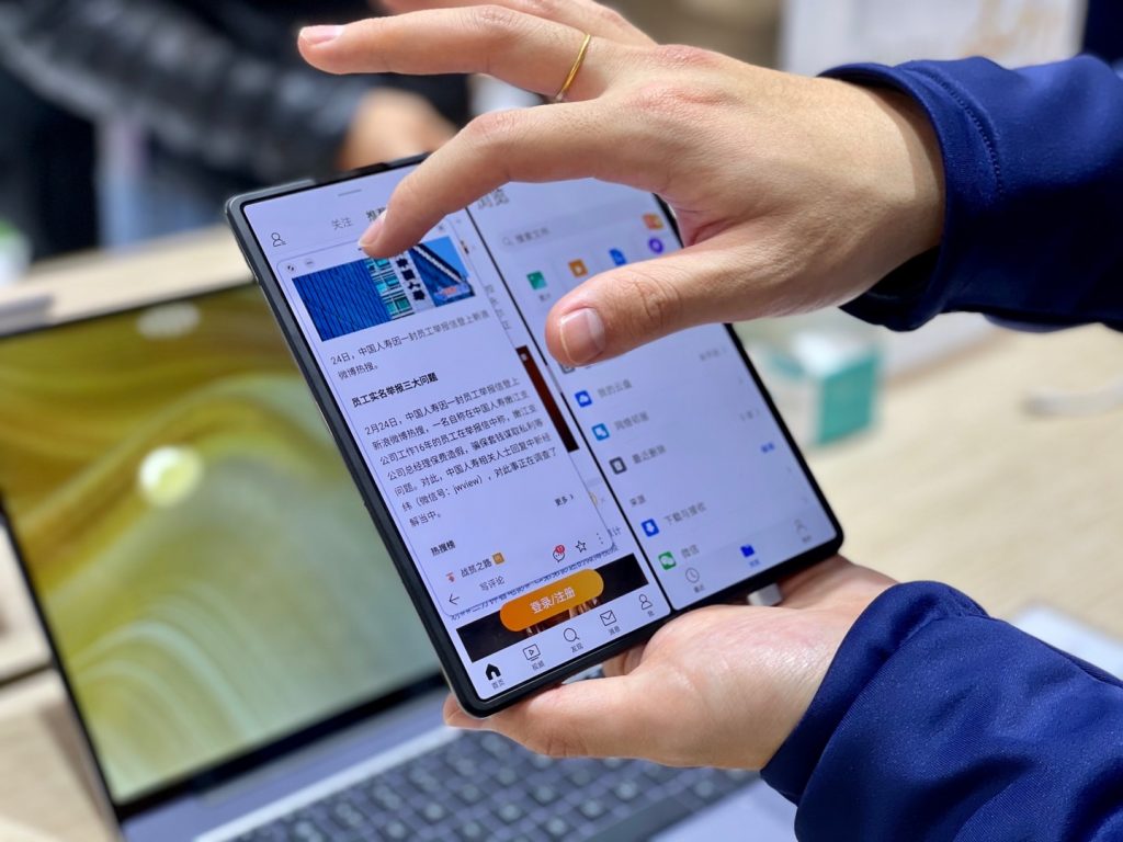 另一个车水马龙的是华为的展位,日前其发布的全新一代折叠屏手机Mate X2,也成为本次展会的一大亮点,展台邻近想要上手体会的人川流不息。本次华为Mate X2采用了向内折叠的计划,立异性的双旋铰链规划,让这款手机真实做到了无缝联接,进一步改进了手机折痕问题。